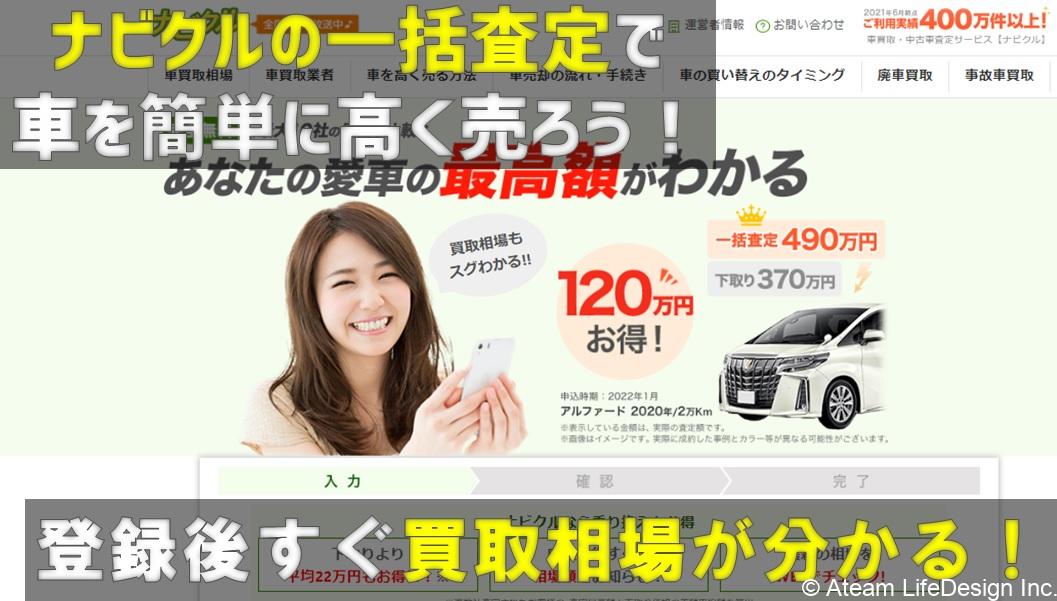 ナビクルは累計400万件超を誇る人気の一括査定サイト!完全無料で相場が見れて、簡単に高く売れる口コミも多い!